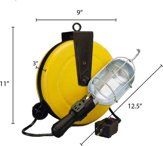 Alert Stamping 5000-50G-CB Incandescent Metal Retractable Cord Reel Work Light with Circuit Breaker