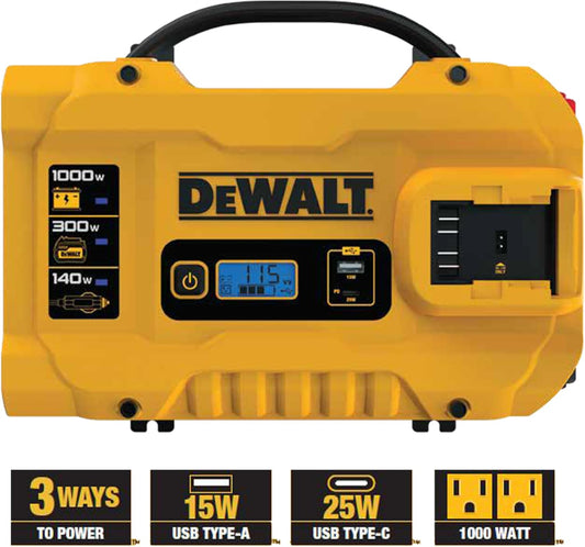 DEWALT DXAEPIP3W 20V, 3-Way Powered (Cables, Battery, DC Plug) 1000 Watt Power Inverter; Dual AC Outlets, 1 USB-A Port, & 1 USB-C 30W PortRegular price $213.00 CADRegular priceUnit price per-